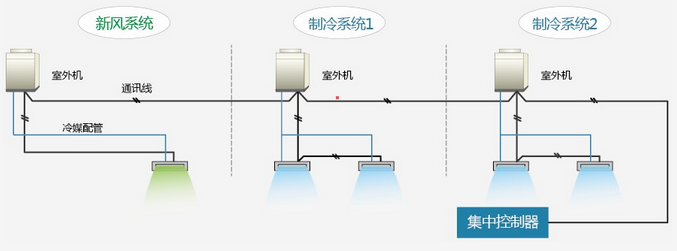 日立新風(fēng)系統(tǒng)與制冷系統(tǒng)可以同時(shí)接入一個(gè)中央空調(diào)控制系統(tǒng),無需單獨(dú)控制,使用靈活便利。